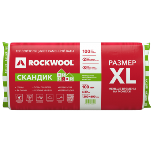- Утеплитель Роквул Лайт Баттс Скандик 100х600х1200 мм