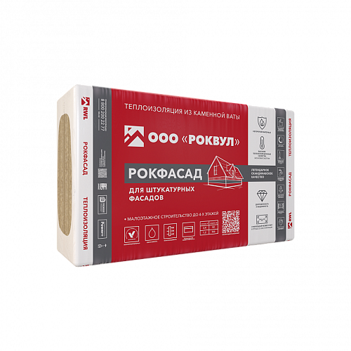Жесткие, устойчивые к деформациям, гидрофобизированные теплоизоляционные плиты изготовленные из каменной ваты на основе горных пород базальтовой группы. Продукт обеспечивает не только тепло – и звукоизоляцию, но также является и основанием для нанесения штукатурного слоя. Плиты Рокфасад применяются как теплоизоляционный слой в фасадных системах с тонким штукатурным слоем, а именно в малоэтажном строительстве (до 4-х этажей); на участках стен не подвергающихся внешним воздействиям (застекленные лоджии, балконы, лестничные клетки) независимо от высоты здания; при выполнении теплоизоляционных работ на внутренних поверхностях.